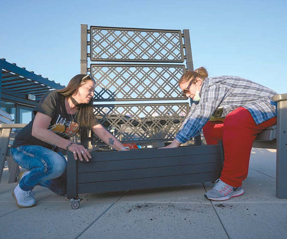 Restoring Waters also has a plant room where residents can cultivate plants for their rooms. And residents are transforming a rooftop patio into a comfortable green space with trees and other plants.